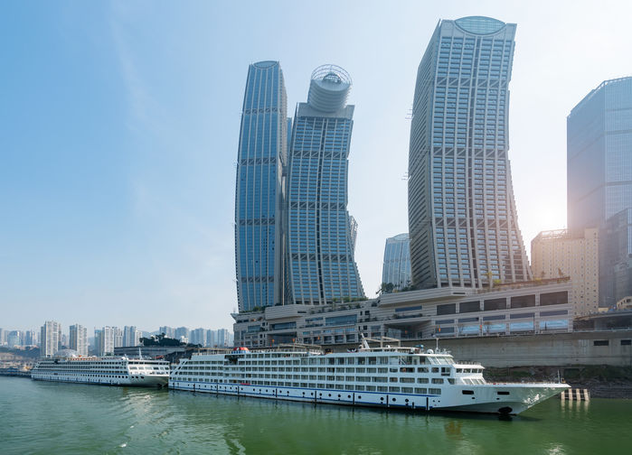 Lentomatka Chongqingiin, 1530 km. Aamiainen ja lounas. Kolme yötä risteilyaluksella.