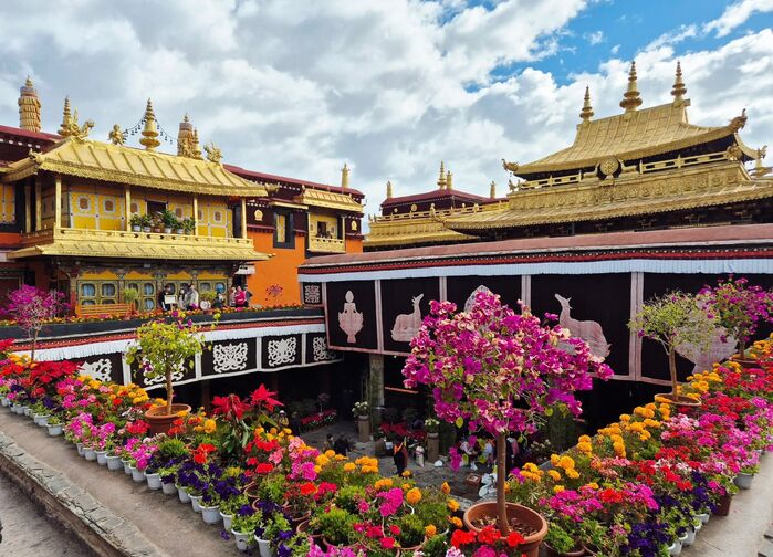Tänään vierailemme myös tiibetiläisten buddhalaisten pyhimmässä temppelissä, 600-luvulta peräisin olevassa Johkangissa. Pyhäkkö sijaitsee Lhasan vanhassa kaupungissa vilkkaiden basaarikatujen keskellä. Kaikkina vuorokauden aikoina voi nähdä pyhiinvaeltajia kumartelemassa tai makaamassa maassa temppelin edessä. Johkangin suurin aarre on kullalla päällystetty Buddha, jonka prinsessa Wen Chang toi tänne 650-luvulla. Hän meni naimisiin miehen kanssa, josta tuli ensimmäinen lama. Temppeli kertoo vierailijalle omalla kielellään lamalaisesta symboliikasta ja ikonografiasta. Päivän aikana nautimme yhteisen lounaan. [A,L]