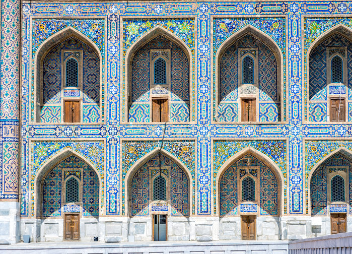 Bussimatkallamme Samarkandiin pysähdymme Gijduvanissa, jossa vierailemme tunnetussa keramiikkatehtaassa. Samarkandin historia ulottuu tuhansia vuosia taaksepäin, jolloin se asutettiin. Useat asiantuntijat ovat sitä mieltä, että kaupungilla on jopa yhtä paljon ikää kuin Roomalla ja Babylonialla. Kaupungin historia on mitä mielenkiintoisin − Aleksanteri Suuri valloitti sen vuonna 329 eaa ja kaupungista kehittyi sittemmin merkittävä kauppakeskus Kiinan ja Välimeren välisessä kaupankäynnissä. Samarkandin uusin ja ehkäpä merkittävin kukoistuskausi alkoi, kun valloittaja Timur Lenk valloitti sen ja teki siitä valtakuntansa pääkaupungin 1360-luvun loppupuolella. Väkivaltaisesta maineestaan huolimatta Timurin aikana rakennettiin kaupunkiin useita kauniita ja arvokkaita rakennuksia. Hän käytti arvostetuimpia arkkitehteja ja taiteilijoita tehdäkseen kaupungista mahdollisimman upean − kaupungista, jota hän rakasti. Monia näistä rakennuksista saamme ihailla vielä tänä päivänäkin.