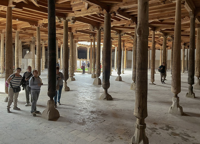 Legendaarisessa ja erilaisten myyttien verhoamassa Buharassa vietämme kaksi kokonaista päivää. Arkeologien mukaan kaupunki olisi perustettu jo noin 500-luvulla eaa, mitä todennäköisimmin vieläkin aikaisemmin. Siitä kehittyi nopeasti tärkeä kauppa- ja kulttuurikeskus. Vaikuttavien nähtävyyksien lisäksi on siis hyvä pitää mielessä Buharan maine kauppapaikkana, kaupunki on tunnettu muun muassa erinomaisista käsitöistään. Buhara oli yksi Silkkitien varrelle jääneistä merkittävimmistä kauppakaupungeista. Tutustumme lähemmin Buharan tärkeimpiin nähtävyyksiin, kuten Ismail Samanin mausoleumiin, Arkin linnoitukseen, Bolo Hauzin moskeijaan ja Po-i-Kaklyaniin, joka on arkkitehtoonisten mestarinäytteiden katselupaikka vanhan kaupungin keskeisimmissä osissa. Myöhemmin päivän aikana näemme vanhoja kauppataloja, joissa niin silkki, puuvilla, jalokivet, mausteet ja muutkin merkittävät kauppatavarat vaihtoivat omistajaa kaupungin kukoistuksen aikana. Vierailemme myös Hudjumissa, paikallisessa silkkikutomossa, jossa valmistetaan mattoja. Ehdimme myös poiketa värikkäillä mauste- ja teemarkkinoilla.