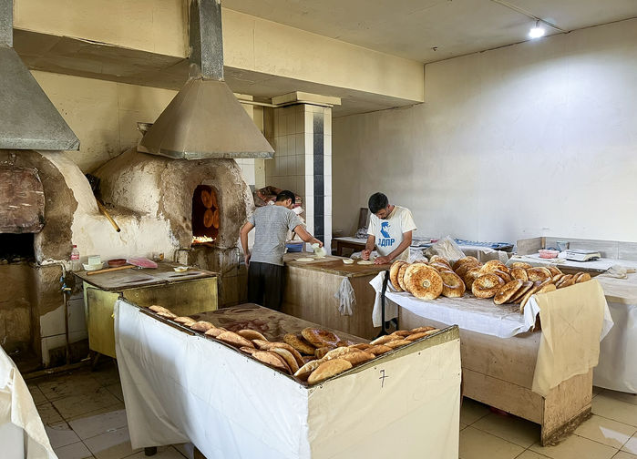 Ennen matkan aloittamista Khivaan nautimme lounaan. Lounaamme muodostuu uzbekistanilaisista erikoisuuksista, ja nautimme sen perinteisessä ravintolassa. Paikallinen keittiö, samoin kuin kulttuuri, ovat saaneet vaikutteita monesta eri maasta, kuten esimerkiksi Persiasta, Mongoliasta, Kiinasta, Venäjältä ja Koreasta. [A,L,I]