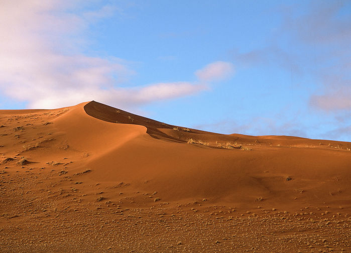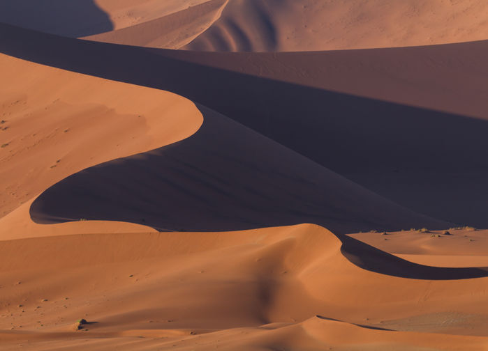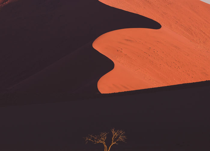 Aikaisin aamulla lähdemme lodgesta ja lyhyehkön ajomatkan jälkeen saavumme Sossusvleihin – yhteen Namibian geologisista ihmeistä. Saavumme paikalle auringon ollessa vielä matalalla, valon ja varjon kontrastit punaisilla ja valtavilla hiekkadyyneillä luovat lähes maagisen näyn. Korkeimmat dyynit ovat yli 300 metriä korkeita. Hiekka huuhtoutui miljoonien vuosien aikana etelässä sijaitsevan Orange-joen kautta mereen, ja merivirrat kuljettivat sen pohjoiseen, missä meren aallot ja tuuli veivät hiekan takaisin maalle.