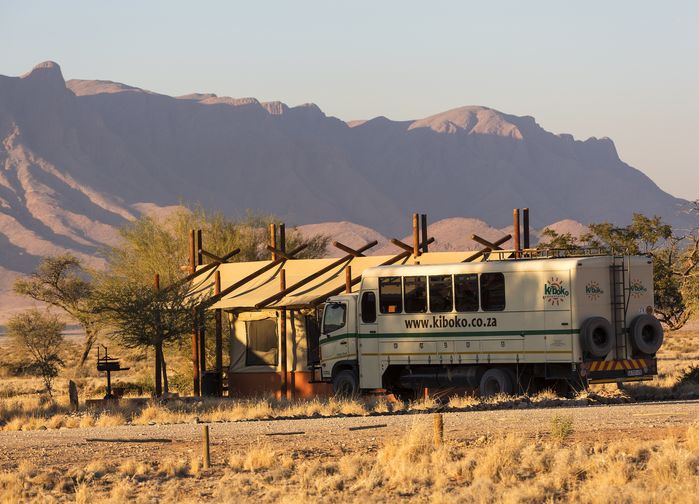 Aamiaisen jälkeen matkamme jatkuu kohti etelää, yhtä Namibian upeimmista luonnonalueista, Sossusvleita, joka tunnetaan valtavista punaisista hiekkadyyneistään. Bussimme on niin sanottu Overland-bussi, nelivetoinen erikoisbussi, joka on suunniteltu ”kovaan” käyttöön ja johon mahtuu enintään 19 matkustajaa. Suurin osa Namibian teistä on sorateitä, mutta hyväkuntoisia. Overland-bussit ovat täydellisiä näihin olosuhteisiin.