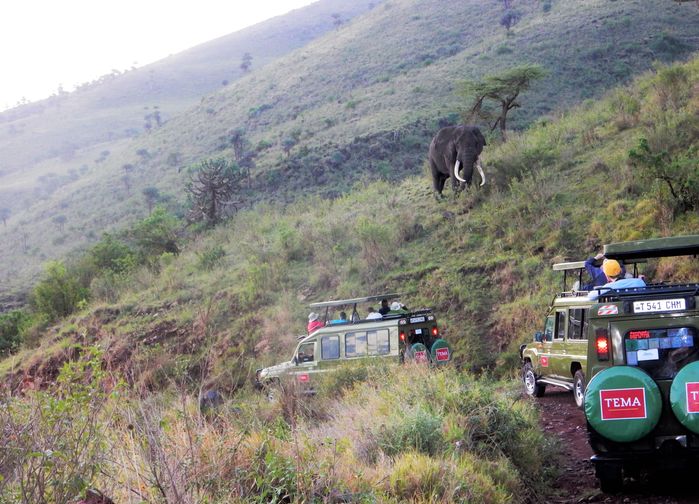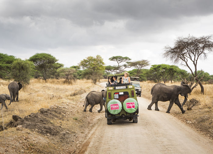 Tansaniassa liikumme safarijeepeillä, joissa on ikkunapaikat jeepin kaikille kuudelle matkustajalle. Jeepeissä on kohotettava kattoluukku, joka avataan puistoajeluiden ajaksi, mikä helpottaa valokuvausta. Tema-opas kiertää ajoneuvojen välillä.