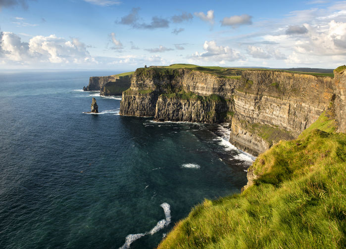 Galwaystä matka jatkuu etelään halki Burrenin erikoisen kivisen maiseman. Arktiset kukat kasvavat täällä vieri vieressä kauniiden välimerenkasvien kanssa. Seuraamme rannikon tuntumassa kulkevaa tietä, ja pysähdymme Cliffs of Moherin kallioilla, joiden pystysuorat seinämät laskevat yli 200 metrin korkeudesta suoraan Atlanttiin. Meren tyrskyjen pirstoutuminen kallioita vasten on mahtava näky. Kirkkaalla säällä täältä näkee Aransaarille asti. Tämän päivän päämäärämme on viehättävä Traleen tai Killarneyn kaupunki, jonne majoitumme seuraavaksi kahdeksi yöksi. Illalla nautimme yhteisen illallisen. [A,I]