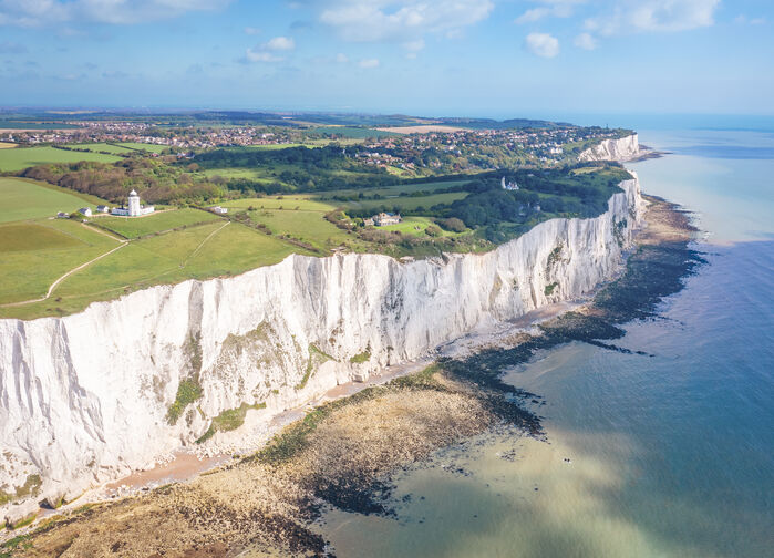 Päivän ensimmäisen pysähdyksen teemme Doverin ikonisten valkoisten kallioiden luona. Nämä dramaattiset kalkkikivikalliot kohoavat Englannin kanaalia vasten – ne ovat vuosisatojen ajan olleet Englannin rannikon symboli.