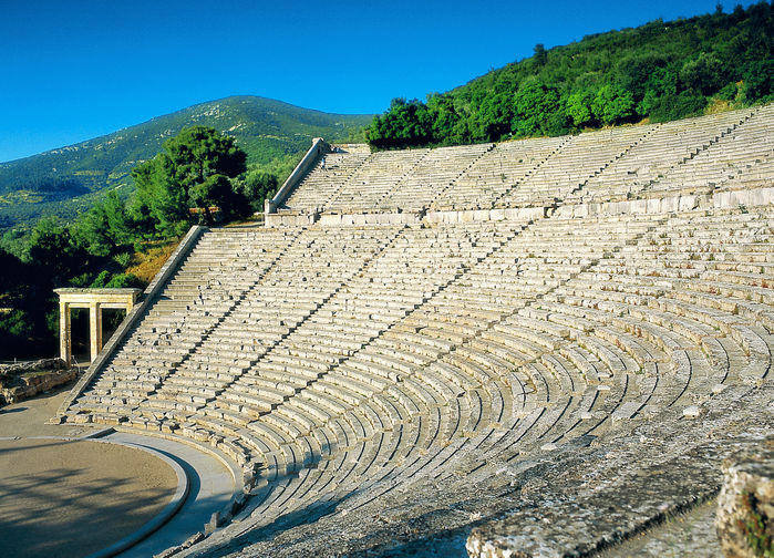 Epidauroksessa, antiikinaikaisessa lääketieteen jumalan Asklepioksen palvontapaikassa, on suurenmoinen teatteri, johon mahtuu 14 000 katsojaa. Teatterin akustiikka on vertaansa vailla. Kuiskauskin kantautuu selvästi näyttämöltä ylimmille penkkiriveille. On erikoinen kokemus seistä paikalla, jossa antiikin draamoja esitettiin jo ennen ajanlaskumme alkua, ja joka on yhä käytössä.