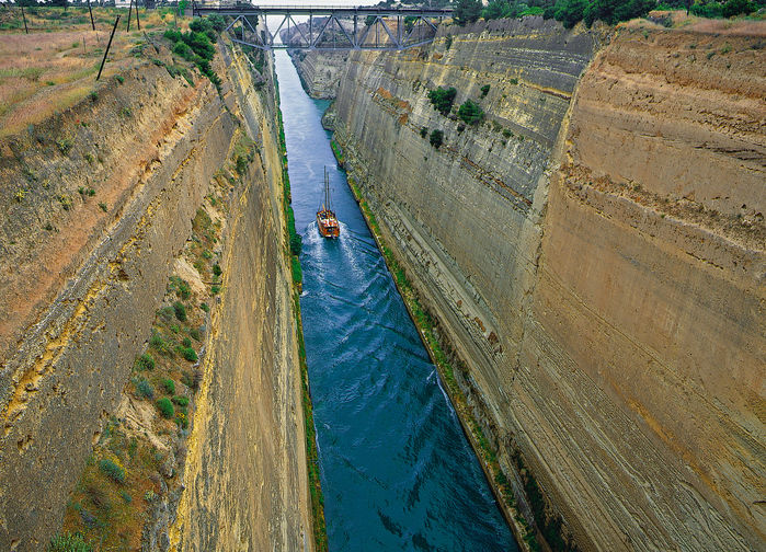 Matkalla Ateenaan ylitämme Korintin kannaksen halkaisevan, piikkisuoraa kanjonia muistuttavan Korintin kanavan. Kanavan ansiosta meritie Adrianmeren ja Egeanmeren välillä lyheni 320 kilometrillä.