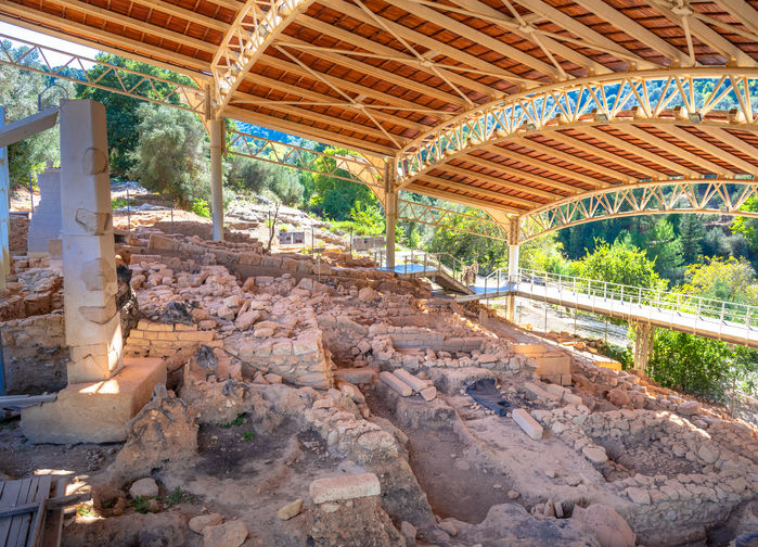 Päivän noin viiden kilometrin pituinen vaellusreitti kiemurtelee Elefternan arkeologisella kaivausalueella. Patikoimme ohi eri aikakausien, doorilaisten ja helleenien jälkeensä jättämiltä muistomerkeiltä roomalaisille kaupunginraunioille.