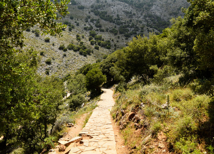 Patikoidessamme tässä miellyttävässä ympäristössä kuulemme koskien kohinaa ja lintujen laulua. Metsän vierustassa kasvaa vieri vieressä villejä oliivipuita, mulperipuita, hedelmäpuita, sypressejä, manteli- ja pähkinäpuita. Suuret plataanipuut muodostavat miellyttävän varjoisia paikkoja kaikkein lämpöisimpinä aikoina.