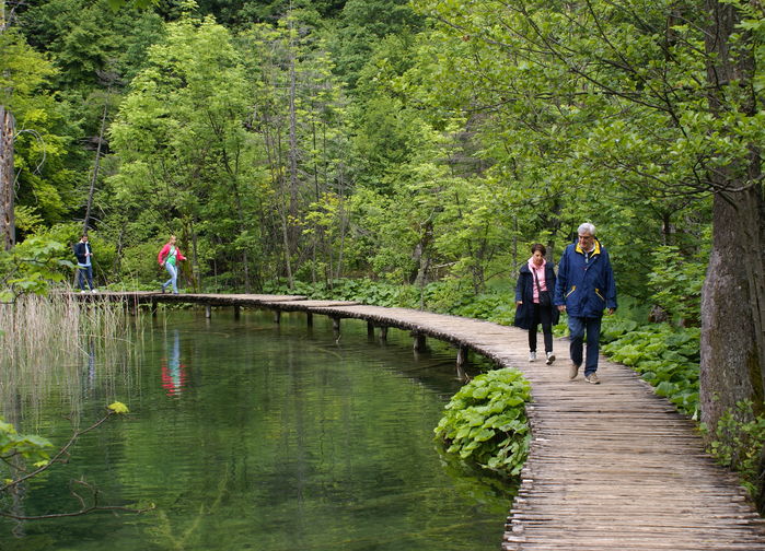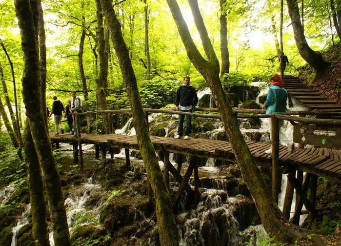 Plitvice ei ole vain kansallinen aarre, se on myös yksi Unescon maailmanperintökohteita. Olemme perillä kansallispuistossa ajettuamme reilun 1,5 tunnin bussimatkan Velebitvuoriston halki. Päivän noin yhdeksän kilometrin vaellusta täydentää venematka yhdellä puiston kauniista järvistä. Karstivuorien korkeuserot ovat muodostaneet vesistön, jossa on paljon niin korkeita kuin mataliakin vesiputouksia. Reittimme on siis tänään mäkinen ja poluilla voi olla irtosoraa.