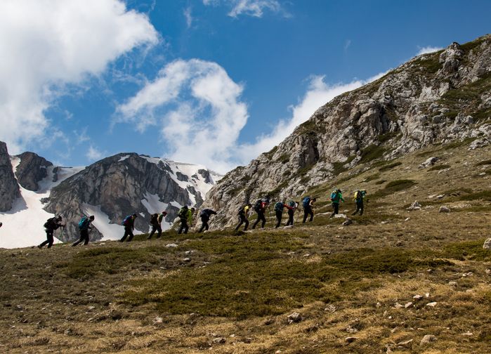 Päivän vaellus kulkee etelään Voskopojan kylästä ja nousee rotkojen sekä kukkivien niittyjen halki korkeammalle harjanteelle, josta avautuvat upeat näkymät ympäröiville vuorille. Reitin varrella saatamme kohdata paikallisen paimenen laumoineen. Palattuamme takisin kylään nautimme hyvin ansaitun perinteisen lounaan. Illalla kokoonnumme yhteiselle illalliselle.