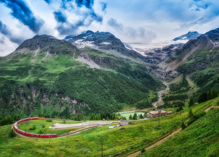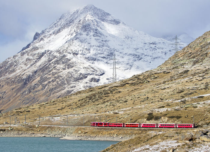 Lähdemme aikaisin aamulla bussilla noin 2,5 tunnin matkalle Comojärven itärantaa seuraillen ja läpi ihastuttavien viininviljelymaisemien kohti Tiranoa, joka sijaitsee Sveitsin rajalla. Tiranossa nousemme kapearaiteisella radalla kulkevan Bernina Express -junan kyytiin. Junan ikkunasta saamme ihailla alpiinista luontoa, korkeita lumihuippuisia vuoria, jäätiköitä, alppijärviä ja kukkaketoja. Henkeäsalpaavan kauniit maisemat seuraavat toinen toistaan ja jokainen radanpätkä on erilainen. Radan korkein kohta on Ospizio Berninassa noin 2 250 metrin korkeudessa, eikä mikään muu junarata kulje näin korkealla Alpeilla. Matkaamme 196 sillan yli ja 55 tunnelin läpi, ja nautimme suurista ikkunoista avautuvista maisemista.