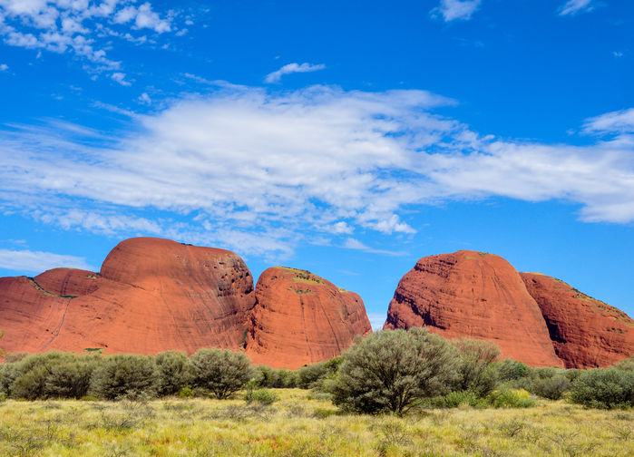 Lento Cairns – Uluru (Ayers Rock). Retki Kata Tjutassa ja Uluru. Bussimatka noin 60 km. Aamiainen ja illallinen tähtitaivaan alla. Hotelliyöpyminen Ulurussa, Ayers Rockin läheisyydessä.