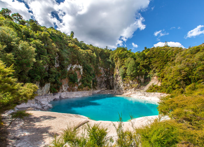 Waimangun tulivuorilaakso sai alkunsa vuonna 1886, kun Mount Tarawera räjähti valtavina purkauksina. Vuori halkeili kahtia, ja syntyi 17 km pitkä repeämä ja 13 kraatteria. Nautimme ainutlaatuisesta luonnosta ja näkymistä niin kävelyretkellä kuin veneretkelläkin, jonka teemme Tarawera-järvellä, unohtamatta maukasta retkilounasta. Päivämme jatkuu matkalla ”Buried Villageen” – paikkaan, joka hautautui tuhkan alle vuonna 1886. Illalla osallistumme maorijuhlaan, jonka ohjelmassa on ruokaa, musiikkia ja tanssia. [A,piknik-lounas,I]